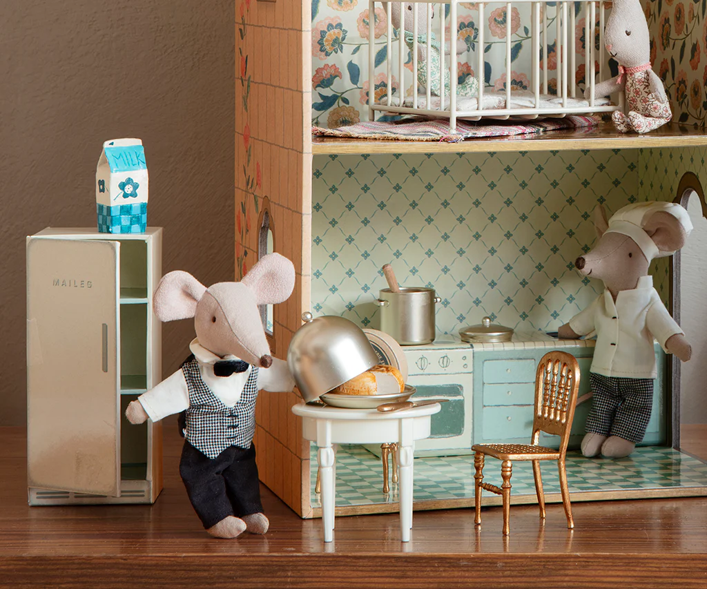 What every mouse dreams of. Treat your mice with this delicious surprise with such a beautiful presentation. Our cheese bell is metal, so our Waiter Mouse can easily lift the top up with his magnetic hands.