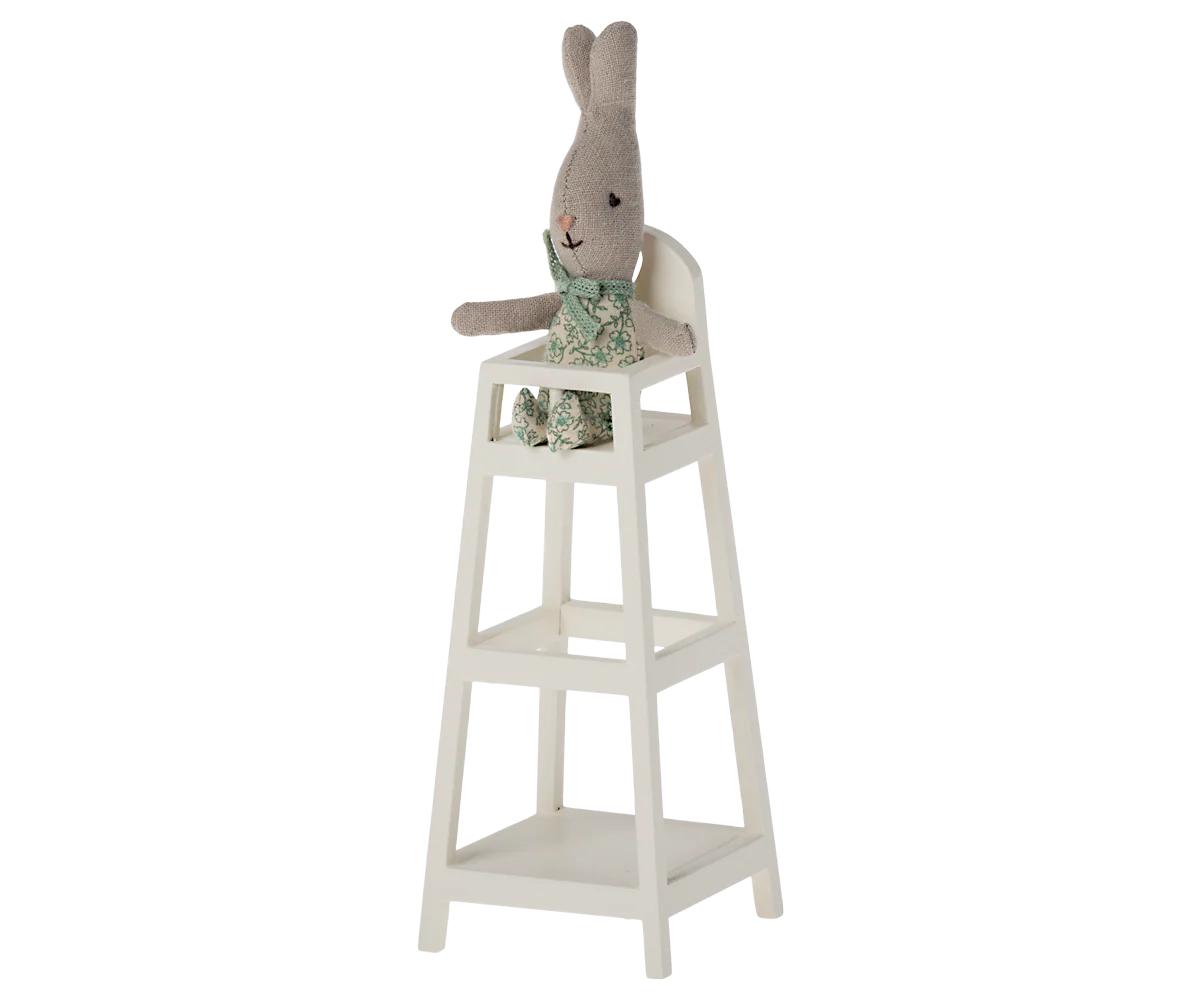 The word "My" means "tiny" in Danish, so this wooden high chair is perfect for feeding your My-sized friends or Baby Mice. The adorable baby chair has a delicate heart carved out on the back.